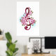 Pink treble clef with delicate, detailed pink Japanese cherry blossoms against white background painted over with light blue paint Blooming pink sakura.