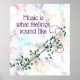 Cette affiche a un look arrière - plan en marbre avec une partition musicale stylisée, et une chaîne de petites marguerites et de feuilles. Le texte dit : "La musique est ce à quoi les sentiments ressemblent"