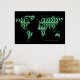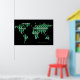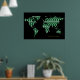 Idée de décoration pour les murs d'une carte du monde noir et vert avec des notes musicales