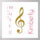 Note musicale dorée, clef à trois, sur arrière - plan blanc, avec le nom personnalisé de l'amateur de musique dans un style de police rouge et moderne