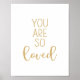 You Are So Loved, une citation de typographie minimaliste en jaune moutarde, parfaite pour tout décor de bébé neutre pour le genre, des tentures murales unisexes pour enfants ou des peintures murales pour petits enfants.