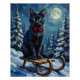 Poster Mystical Black Cat Enchanted Winter Sled Christmas