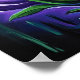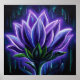 This whimsical poster features a vibrant lotus flower with glowing purple petals and green leaves against a dark, abstract background, conveying a mystical feel. Finished as an oil paint art print.