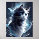 Poster Mystique Kitten noir et blanc | Chat d'aquarelle