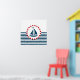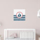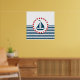 Design nautique avec décoration de voilier en forme ronde sur bleu et blanc rayé arrière - plan