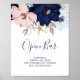 Cette enseigne moderne à barre ouverte fleurie nautique est parfaite pour une croisière ou un mariage sur la plage. Le design fantaisiste présente des fleurs d'aquarelle rose pâle et bleu marine aux accents d'étoile d'or, donnant une ambiance de plage.