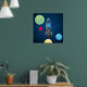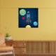 Ciel ocre nocturne de l'espace avec des planètes colorées et lumineuses et des étoiles blanches, avec un navire-fusée argenté volant à travers le ciel. Idéal pour une petite chambre pour les garçons pour le type qui aime l'espace et le voyage. Tous les Designs Copyright © 2012 www.CuteComfy.com