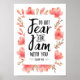 La typographie de calligraphie en lettres noires élégantes avec des glyphes fantaisistes et des alternatives et un swash ornemental dit : "Ne craignez pas que je sois avec vous." L'écriture est de Ésaïe 41:10. Le design est accentué par la bordure colorée de fleurs d'aquarelle sur tous les côtés.