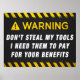 Ne volez pas mes outils dont j'ai besoin pour payer votre avantage