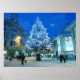 Neige à Cardiff. La Lune brille sur une rue Queen neigeuse Le sapin de Noël resplendissant de neige fraîchement tombée. Cardiff 17/12/2010