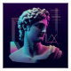 sculpture grecque classique avec l'esthétique vibrante et nostalgique du mouvement des vagues de vapeur des années 80.