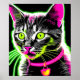 Un portrait vibrant et d'inspiration néon d'un chat curieux. Cette oeuvre d'art numérique présente des couleurs audacieuses et des lignes saisissantes (Ce design fait avec IA). Commandez dès aujourd'hui et offrez-vous la joie du shopping !