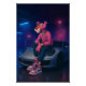 A slick pop art scene: a laid-back pink panther character in a sweater and gold watch sits on a silver sports car inside a neon-lit parking. Blue-magenta glow, streetwear sneakers, and a cheeky wall outline blend luxury car culture with cartoon cool—perfect for a bold, statement wall moderne.