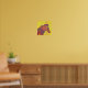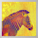 un néo-zèbre pop art en jaune, bleu, violet et rouge avec une ambiance rétro