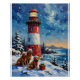Embrace the gentle giant spirit of the holiday season with this majestic Newfoundland Christmas design! This magical scene features three massive, sweet-tempered Newfoundlands (Newfies) with their thick, black coats, sitting calmly at the base of a tall red-and-white lighthouse, which stands majestically on a snowy coastal cliff. The lighthouse is beautifully adorned with glowing Christmas lights and fragrant garlands. The dogs wear festive Santa hats and cozy scarves, surrounded by colorful wrapped gifts and cheerful holly branches. The ocean waves sparkle in the moonlight while soft snowflakes drift gently in the air, creating a truly magical winter holiday atmosphere. This design is a perfect Christmas gift for any Newfoundland owner, dog lover, or admirer of festive and magnificent working dog art, capturing the serene joy of the season.