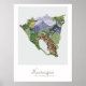 Une carte illustrée du Nicaragua, montrant Volcán Concepción d'Ometepe et quelques-unes des espèces les plus emblématiques du pays : le singe araignée, le jaguar et l'oiseau motmotte.