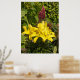 Joli lys jaunes poussant dans un jardin avec feuillage coloré dans l'arrière - plan.