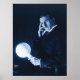 Nikola Tesla montre l'énergie sans fil C 1900 Poster Nikola Tesla, inventeur serbe-américain, qui démontre la transmission sans fil de l'énergie, probablement dans son laboratoire de New York dans les années 1890. L'ampoule est un prototype de lumière "fluorescente" qu'il a inventé consistant en une ampoule en verre partiellement évacuée avec une seule électrode métallique. A proximité mais pas visible, il y a un de ses oscillateurs à haute tension Tesla qui produit un champ électrique de radiofréquence. Le champ électrique ionise le gaz dans l'ampoule, ce qui le fait briller comme un néon. Tesla a inventé un système résidentiel d'éclairage sans fil dans les années 1889.