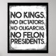Poster No Felon Presidents No Dictators No Oligarchs No K