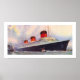 Image publicitaire vintage de Normandie de French Line montrant la longue et gracieuse vue triangulaire du fabuleux bateau art déco à tribord.