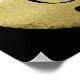 Idée musicale noire et dorée, avec l'image d'une note musicale noire (clef à trois doigts) sur un cercle en détresse, avec nom et initiales personnalisés