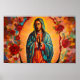 Cette oeuvre représente Notre-Dame de Guadalupe dans un style dynamique et coloré. Elle est montrée avec ses mains pliées dans la prière, portant son manteau bleu traditionnel orné d'étoiles dorées et d'une robe rouge flottante. Elle est entourée de teintes éclatantes d'orange, d'or et de tons riches, symbolisant sa présence divine. Des roses encadrent l'image, représentant son apparition miraculeuse à Saint Juan Diego. Cette interprétation audacieuse et moderne apporte sa beauté et sa grâce intemporelles dans un design frais et attrayant, parfait pour la décoration de maison, des espaces dévotionnels, ou des cadeaux.