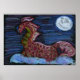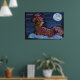 Dessin pastel de Gunilla Wachtel de Kanweienea Kreations. Dragon mythique et coloré sur un nuage avec la lune dans l'arrière - plan.