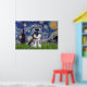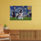 Starry Night de Vincent Van Gogh, l'un des chefs-d'oeuvre les plus appréciés au monde, a été adapté ici pour inclure un chiot Schnauzer avec un collier rouge et une étiquette coeur dorée.