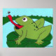 Poster Nursery Decor, Frog catching fly, Hand Drawn