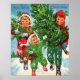 Cette affiche de Noël vintage très brillante et colorée rappelle à un de leurs jeunes que nous voyons des enfants heureux et joyeux ramener l'arbre de Noël à la maison après l'avoir coupé dans la forêt.