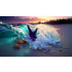 Beautiful ocean beach with violet starfish design during sunset... Let's Color Your World !!