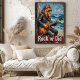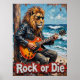 Ce tableau saisissant capture un lion majestueux, orné de lunettes de soleil et d'une veste en cuir, livrant son "collier océanique" à travers une guitare électrique. Il se penche sur un poteau en bois patiné sur une plage de sable, avec des vagues qui s'écrasent et un ciel bleu texturé en arrière - plan. L'utilisation par l'artiste d'un brushstrokes texturé et audacieux met l'accent sur l'énergie brute de la scène et l'attitude "Rock or Die", donnant vie à ce concert inattendu.