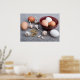 Poster OEufs crus, ail et épices dans la cuisine