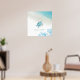 Cette pépinière tropicale murale a été conçue en utilisant ma tortue marine peinte à la main en bleu, turquoise et vert. Il est parfait pour votre bébé garçon à thème tropical pépinière ou chambre à coucher. Mon design comporte une citation inspirante Adventure Awaits Little One ensemble dans la typographie manuscrite tendance style script. Personnalisez-le avec le nom de votre bébé ou les mots de votre choix. Commande encadrée ou non encadrée. Oeuvre créée par Victoria Grigaliunas. Pour en savoir plus sur l'art mural en pépinière, visitez www.zazzle.com/vginvites