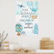 Première Affiche de bienvenue d'anniversaire. Quel ONEderful World 1st Birthday Party design avec ballon bleu, bagages, un globe, caméra, passeport et avion. Bouquet et merveilleuse fête mondiale de premier anniversaire pour les garçons.