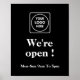 Annoncez votre grande ouverture en style avec cette affiche noire Now Open. Parfait pour les entreprises, les restaurants, les magasins et les bureaux, ce design personnalisable vous permet d'ajouter votre logo, votre nom d'entreprise ou vos heures pour une touche professionnelle. Élégante et attrayante, elle est l'écran d'ouverture idéal pour attirer les clients et rendre votre lancement mémorable.