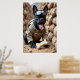 Le caporal Kibble est verrouillé, chargé et prêt à aller chercher! Portant un camouflage du désert, des genoux et un gilet tactique marqué "FETCH 6", cet héroïque Bulldog français crouche derrière des sacs de sable avec un os en caoutchouc tenu comme un explosif. Ses lunettes de vision nocturne sont éveillées, et sa langue est sortie en pleine félicité de mode combat. Un walkie-talkie crépitant complète l'apparence. Cette affiche amusante rassemble des vibes de champ de bataille et un régal en levrette, idéal pour les amateurs d'équipement tactique et de courage à la queue.