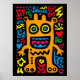 Poster Orange Funky Alien - Neon Pop Art Quirky Creator