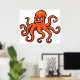 Poster Orange Octopus Cartoon Ocean Sea Creature