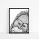 Poster Orangutan Singe noir et blanc Ligne murale