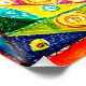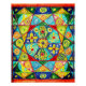 Des motifs géométriques vibrants remplissent l'image, avec des cercles, des triangles et des tourbillons dans un kaléidoscope de couleurs, dont le bleu, le vert, le jaune et le rouge. Le design complexe crée un sentiment de symétrie et d'équilibre.