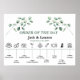 Un panneau mariage du jour avec végétation d'eucalyptus