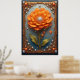 Poster Ornate Orange Flower Artwork in Gold Frame
