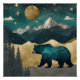 Ce tableau représente une belle représentation d'un ours qui se promène dans les montagnes la nuit. L'ours est entouré d'arbres et de montagnes, et la lune brille dans le ciel. Le tableau apporte une touche de fantaisie et de magie à toute collection.