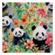 Paysage cool Style Peinture Panda Ours Dans Jardin Fleuri Coloré.