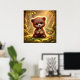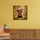 Poster Ours mignon avec fleurs en forêt enchantée |
