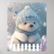 Poster Ours polaire mignon en Casquette bleu neige Écarf