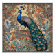 Un Peacock avec une aquarelle détaillée aux yeux expressifs est représenté contre un arrière - plan doux et flou. Les couleurs naturelles rehaussent l'aspect vivant.
