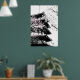 Poster Pagode japonaise noire/blanche avec fleurs de ceri