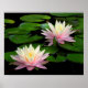Une paire de somptueux nénuphars rose et blanc avec un arrière - plan de lily vert